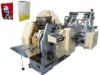 Name: GYHD-400 Automatic Paper Food Bag Making Machine 1. Use This GYHD-400 Automatic Paper Food Bag Making Machine forming the paper bag in one process from roll paper, edge folding, tube forming, cutting, gluing, bottom folding, bottom gluing and finished bag output. It is an ideal machine for producing shopping bags,clothe bags,food bags like bread bags,casual bags andfruit bags,and so on. 2. Characteristics: a) Suited for 30-100 gsm paper. b) Controls bag length through the human-machine touch screen interface. c) PLC programmable servo motor control system d) Equipped with an accurate photocell system for printed mark tracking. e) Color mark error automatic alarming and stopping system f)Automatic oil lubrication system 3. Technical Parameters Paper thickess: 30-100 g/m2 Bag length: 150-400 mm Bag width: 80-250 mm Side width: 20-100 mm speed: 50-300 pcs/min (output depends on quality of paper and bag making length) Power: 6 Kw Total weight: 3600 kg Machine dimensions: 3800 x 1900 x1700 mm